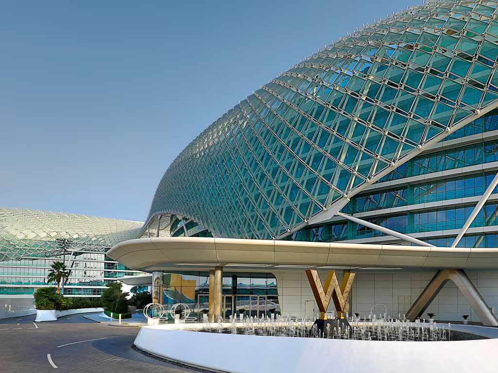 W Abu Dhabi - Yas Island is a striking luxury hotel that offers a vibrant and modern retreat on Yas Island, Abu Dhabi’s premier entertainment destination. Known for its bold, contemporary design and dynamic atmosphere, the hotel stands out with its distinctive architecture, featuring a sleek, modern facade and stylish interiors. The spacious rooms and suites are designed with a chic, edgy aesthetic, offering guests a luxurious and immersive stay with panoramic views of the Yas Marina Circuit, the Arabian Gulf, or the city skyline.